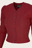 The Ice Skater Cardigan is a vintage style cardigan with puffy shoulders and a V-neck. It has a flattering short length that fits perfectly over a dress and gives a nice silhouette. It´s knitted in a celtic braids inspired pattern.