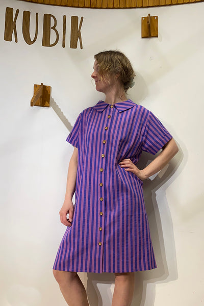 Vår egen blusklänning i ett randigt bomullstyg med lite linnekänsla.