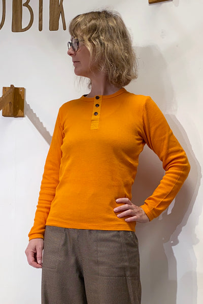 The material is high-quality organic cotton and the brown buttons are vintage.