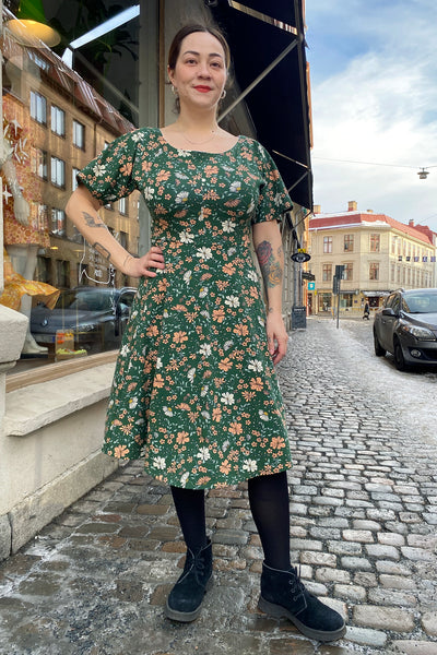 Nyhet! Härlig 50-talsinspirerad trikåklänning med mycket vidd nedtill. Skuren i midjan och timglasformad. Twinkle bygger vidare på vår klänningsmodell Twist, men denna är mer rymlig i överdelen med vida fjärilsärmar och vidare och djupare urringning. Fickor på båda sidorna, samt skärning mitt fram och mitt bak i livet.