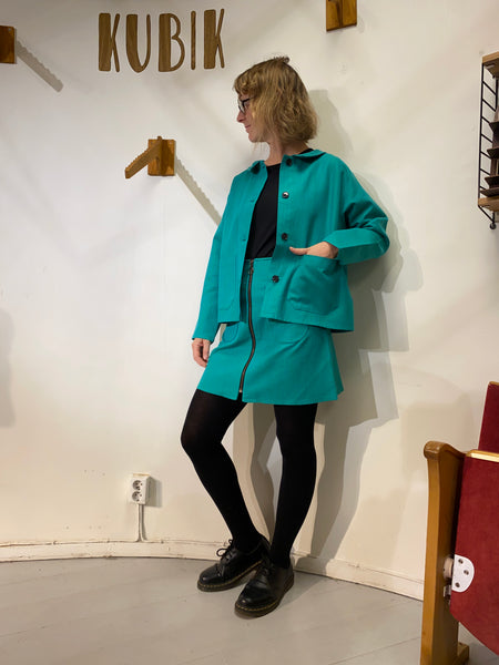 70-talsinspirerad kjol "Zip 1" från vårt egna märke Kubik. Sydd i Strömmas klassiska 60/70-talstyg Lotta i grön färgställning. Tyget är oanvänt från tiden och i en fantastisk kvalitet. Ett arv från tiden då Sverige var ett textilland och Norrköping hade ett stort bomullsväveri.